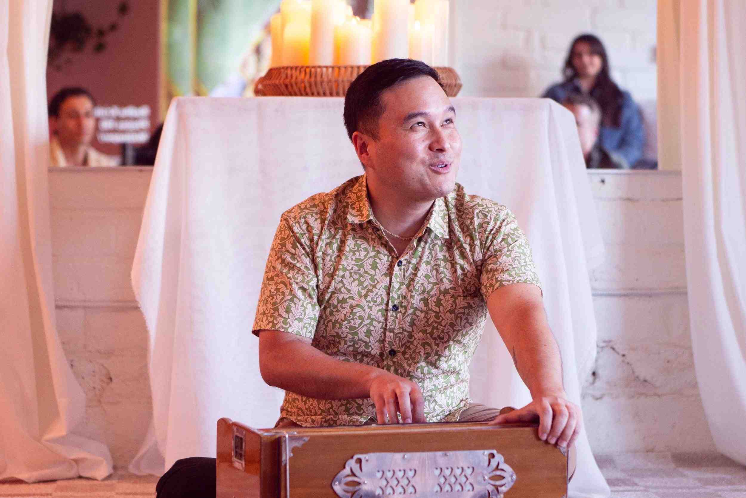 A call-and-response form of devotional singing, where participants chant sacred mantras together, often accompanied by music, to create a joyful and meditative experience.